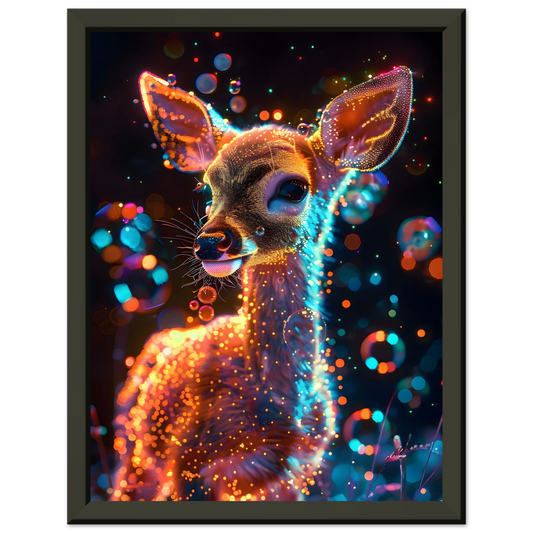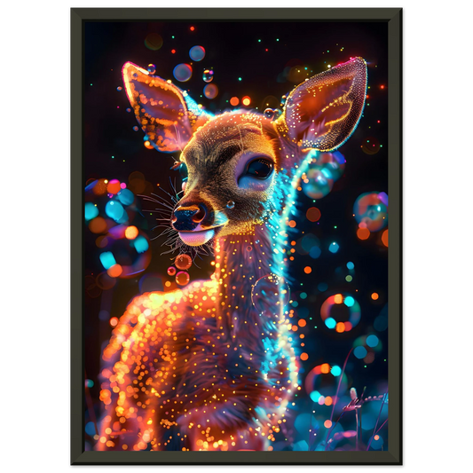 Enchanted Fawn – Neon Glow Fantasy. Premium Semi-Glossy Paper Metal Framed Poster