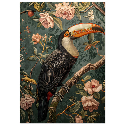 Elegant Toucan in Floral Harmony. Premium Semi-Glossy Paper Poster