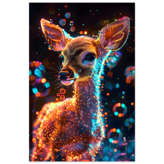 Enchanted Fawn – Neon Glow Fantasy. Aluminum Print