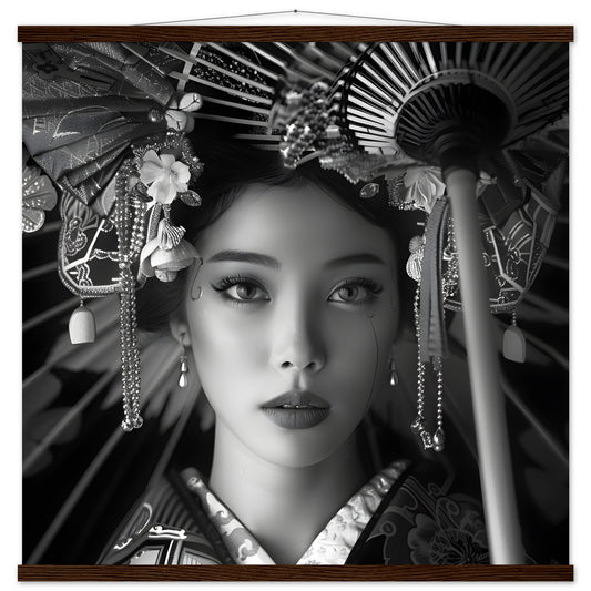 Elegance of Tradition: Portrait of Japanese Beauty. Premium Semi-Glossy Paper Poster with Hanger