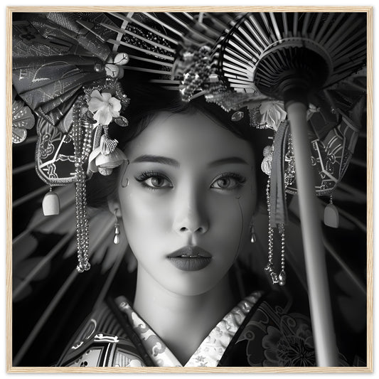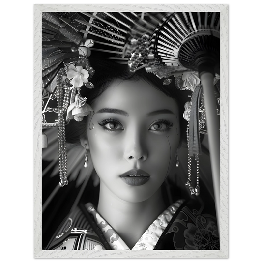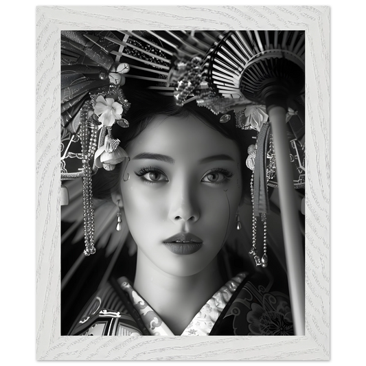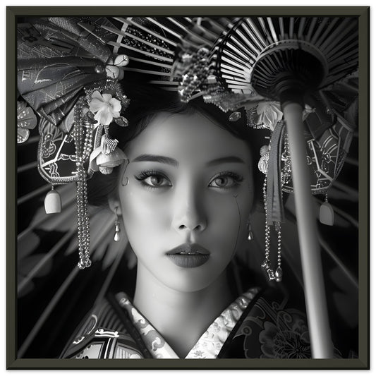 Elegance of Tradition: Portrait of Japanese Beauty. Premium Wooden Framed Poster With Premium Semi-Glossy Paper