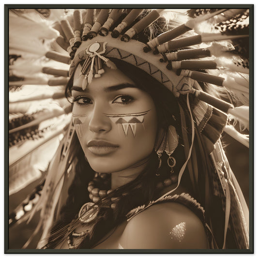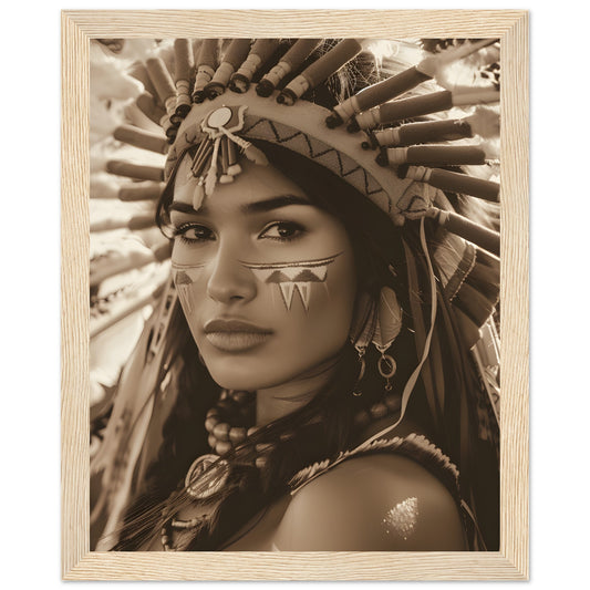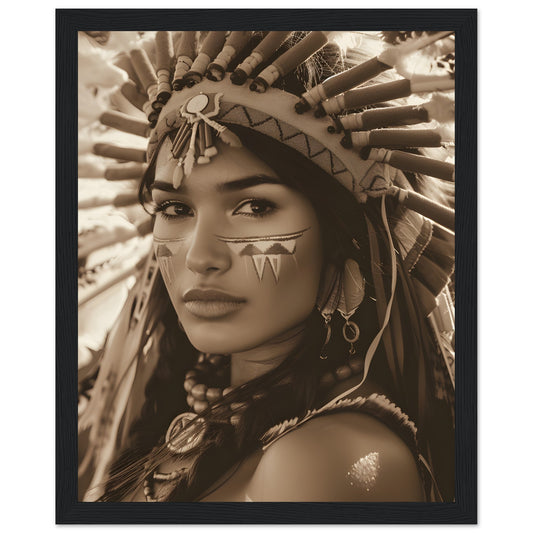 Spirit of the Tribe: Portrait of Native American Beauty. Premium Matte Paper Wooden Framed Poster