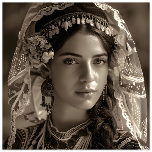 Timeless Beauty: Portrait of Greek Tradition. Premium Semi-Glossy Paper Metal Framed Poster