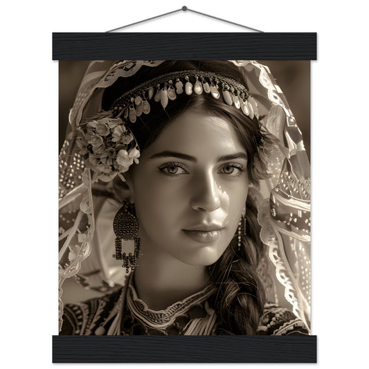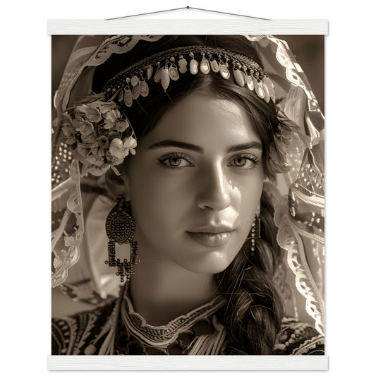 Timeless Beauty: Portrait of Greek Tradition. Premium Semi-Glossy Paper Poster with Hanger