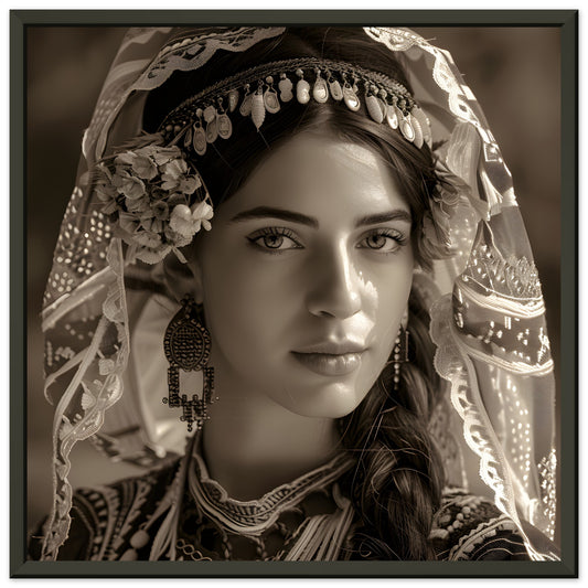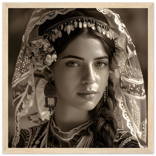 Timeless Beauty: Portrait of Greek Tradition. Fine Art Wooden Framed Poster