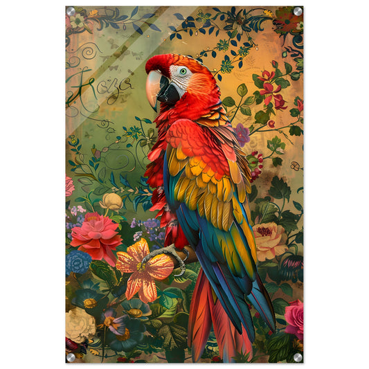 Vibrant Ara in Floral Harmony. Acrylic Print